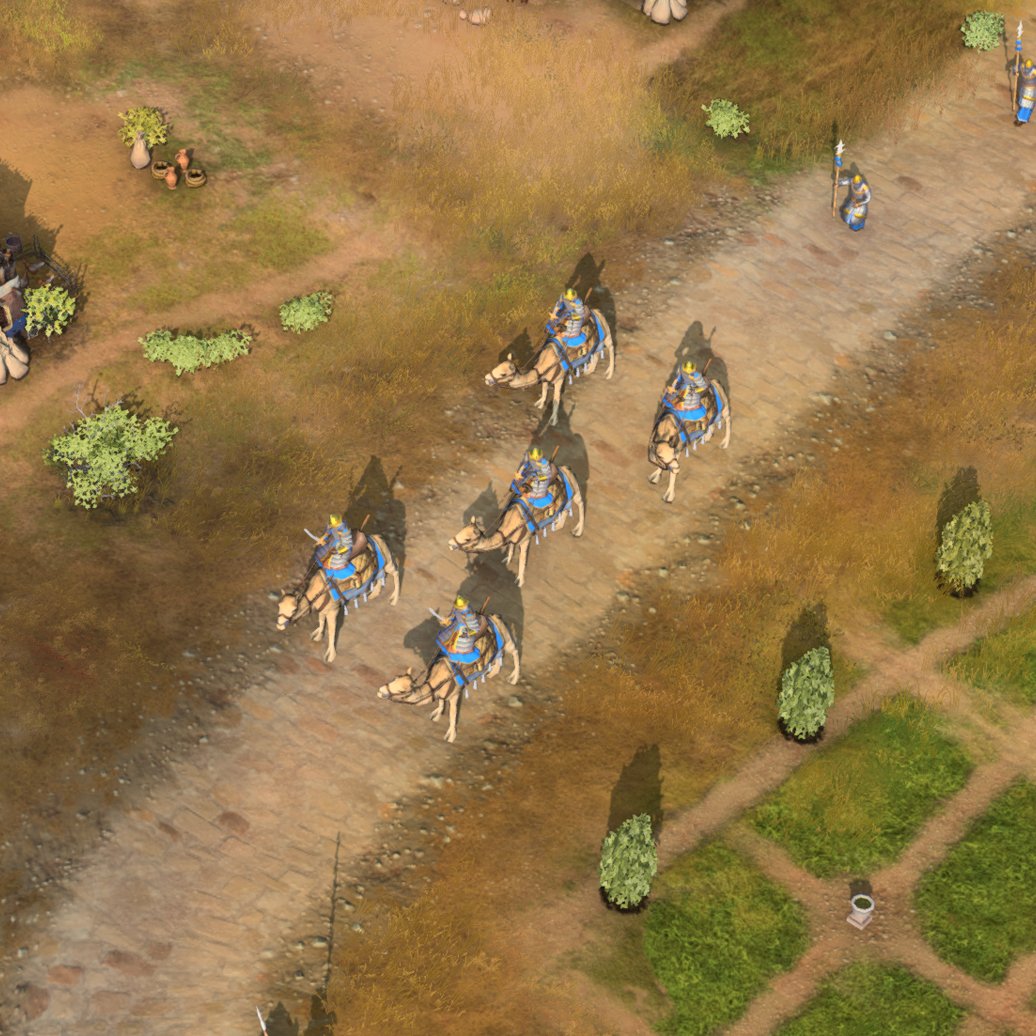 The Camel Archer is an anti-cavalry cavalry unit that reduces damage from nearby enemy cavalry units. Their expanded attack range and higher damage than average Horse Archers allows them to pick away at enemy cavalry from a safe distance.