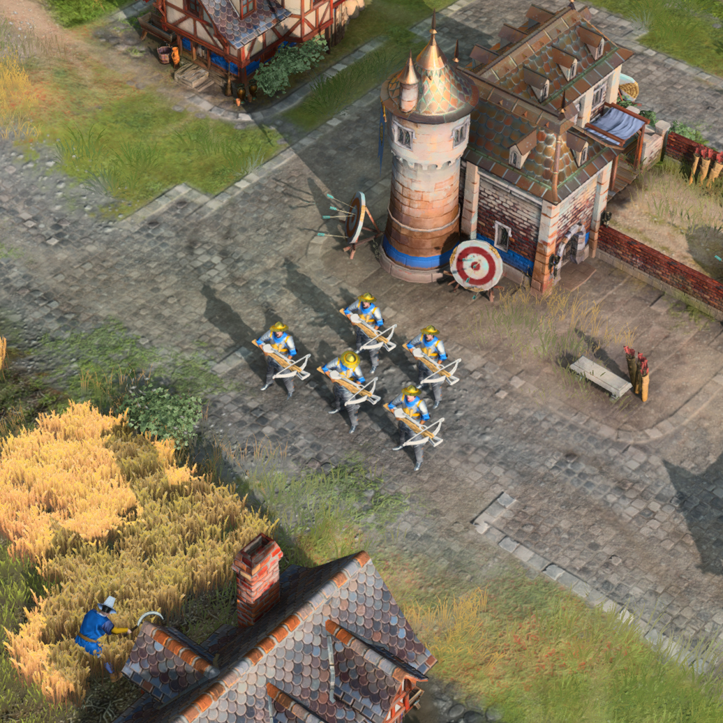 The French have a unique Influence system, where units cost less from Archery Ranges and Stables around the Keep. Their Town Center can produce units quicker with each Age, a key advantage in hastening their economy.