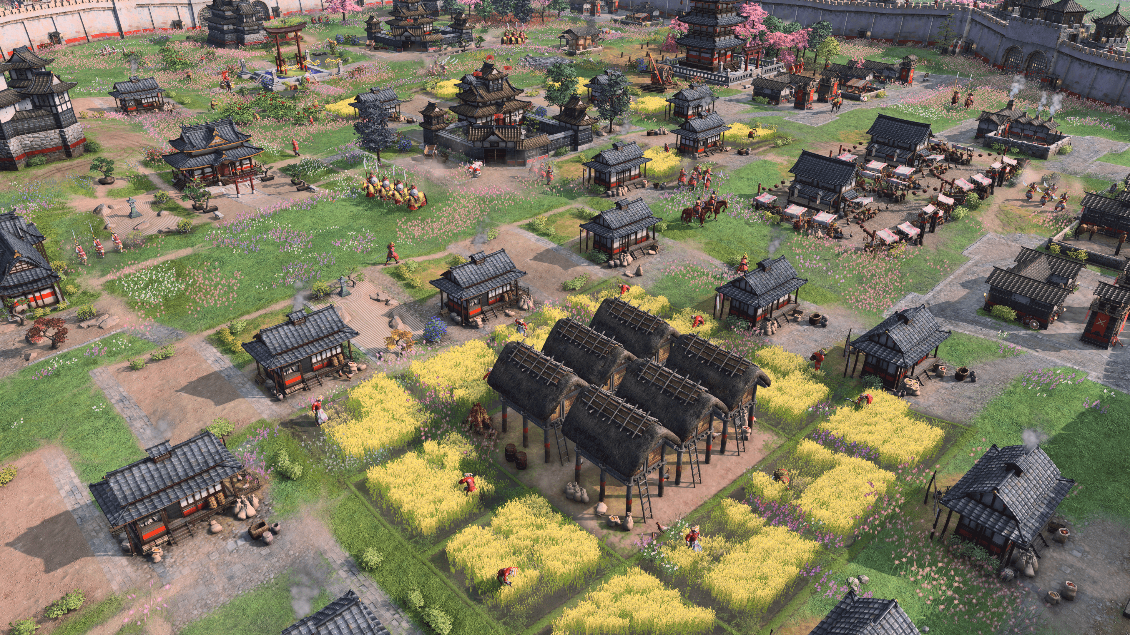 They focus on localized economy supported by Daimyo from Town Centers. Once upgraded into a Daimyo Manor, villagers working farms in the surrounding area will receive a large bonus and Samurai Bannermen become available to produce.