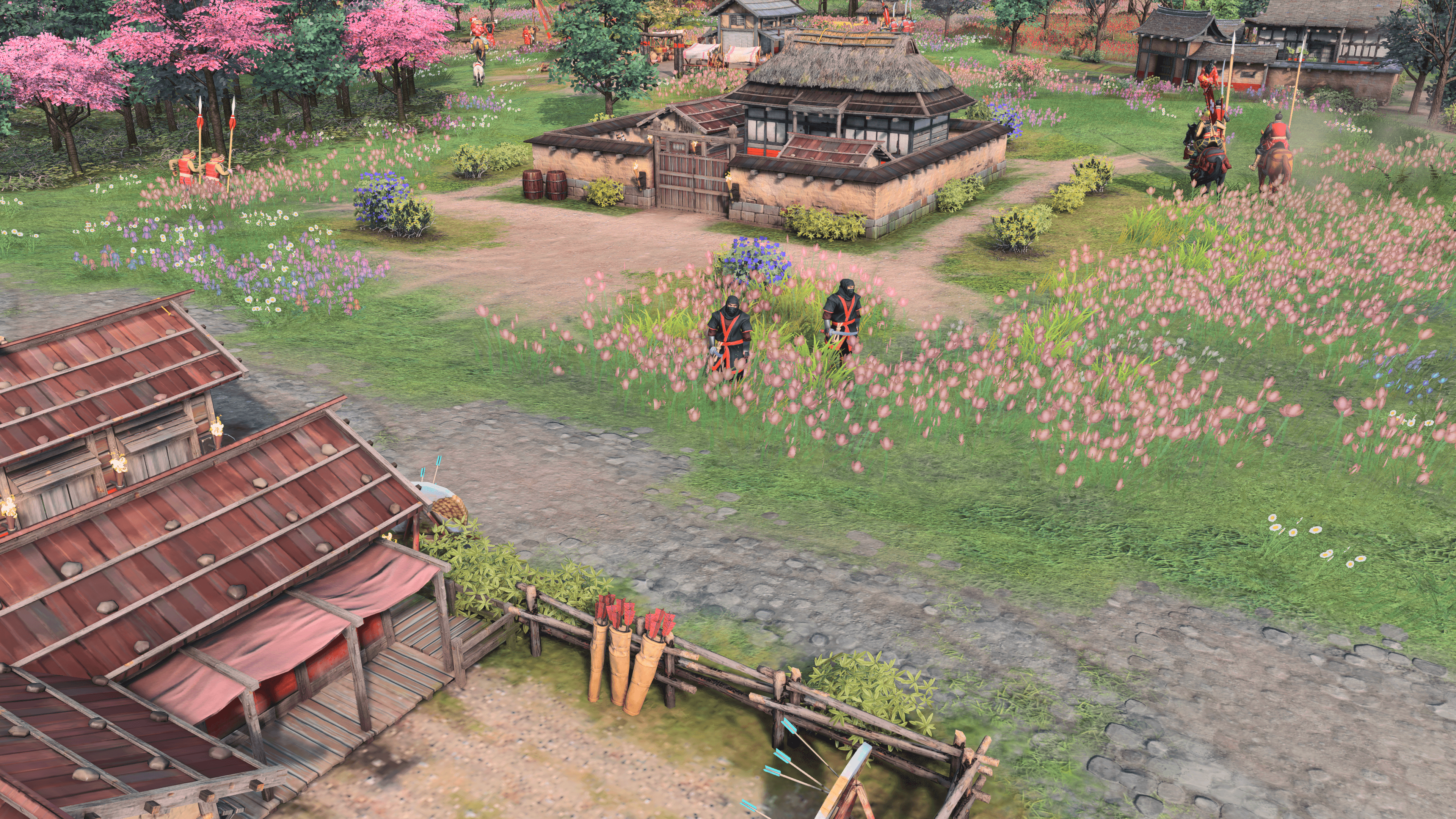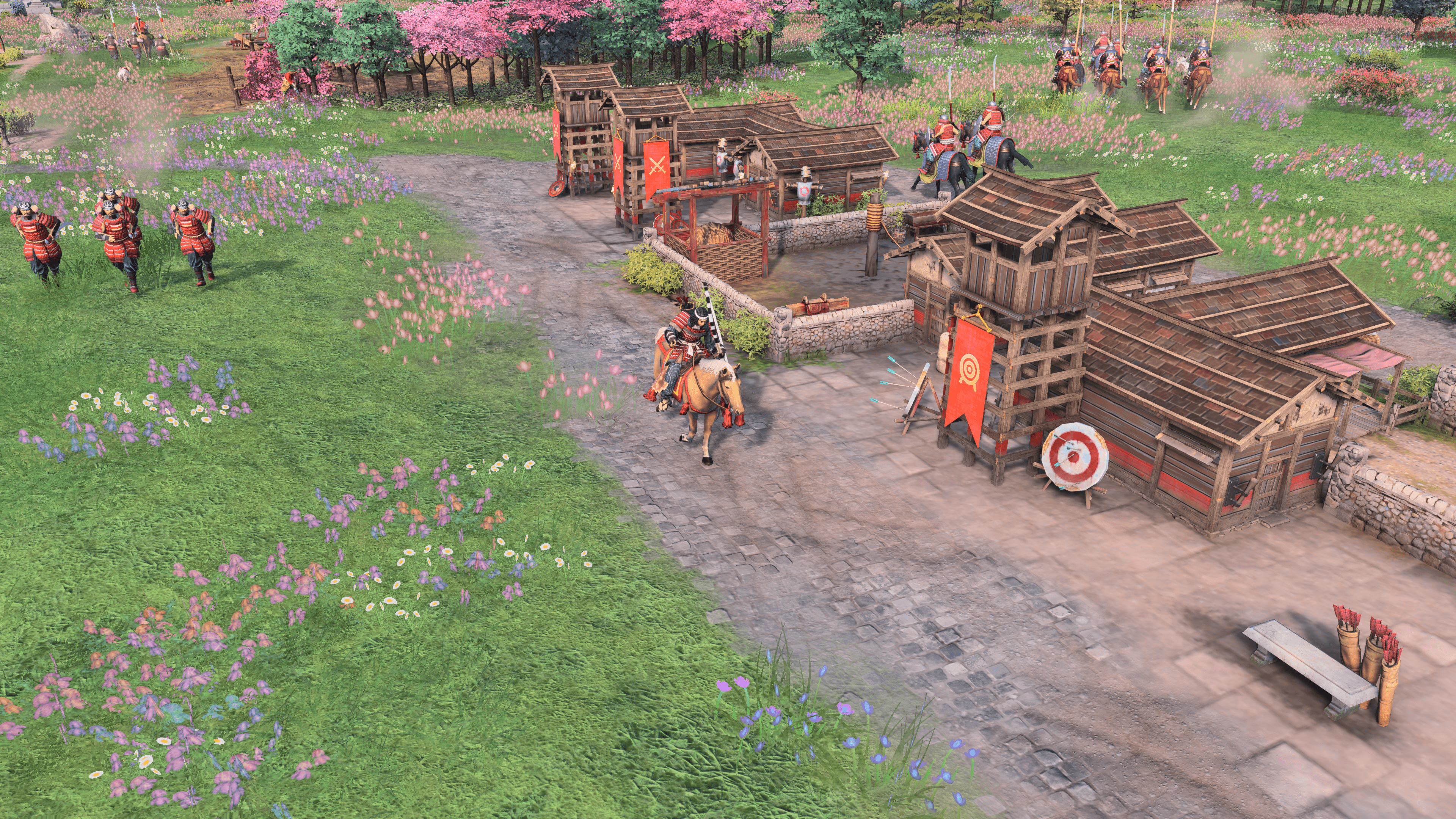 In Age of Empires IV, the Japanese civilization spans the late 8th century CE to the early 17th century CE. Collapse of imperial power has separated the Japanese into small kingdoms, ruled by warlords, to ultimately be re-unified by a bloody civil war. During this period the Daimyo employed the Samurai to defend their territories by paying them with goods, such as land and food.