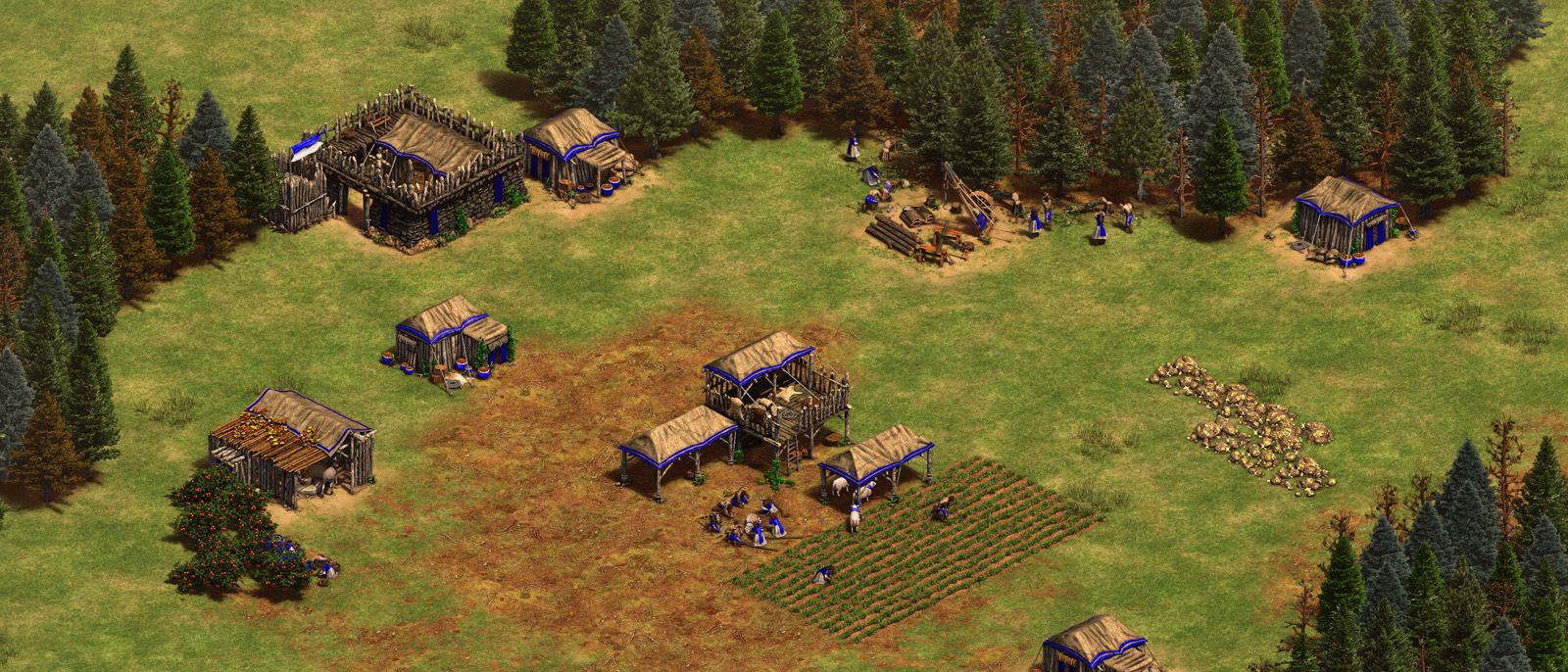 - Construct a Lumber Camp next to a forest near the Town Center to begin collecting Wood