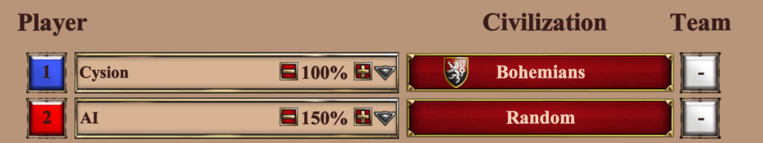 - Fixed a rare issue where AI players would delete their starting TCs if they had more than 100 wood.