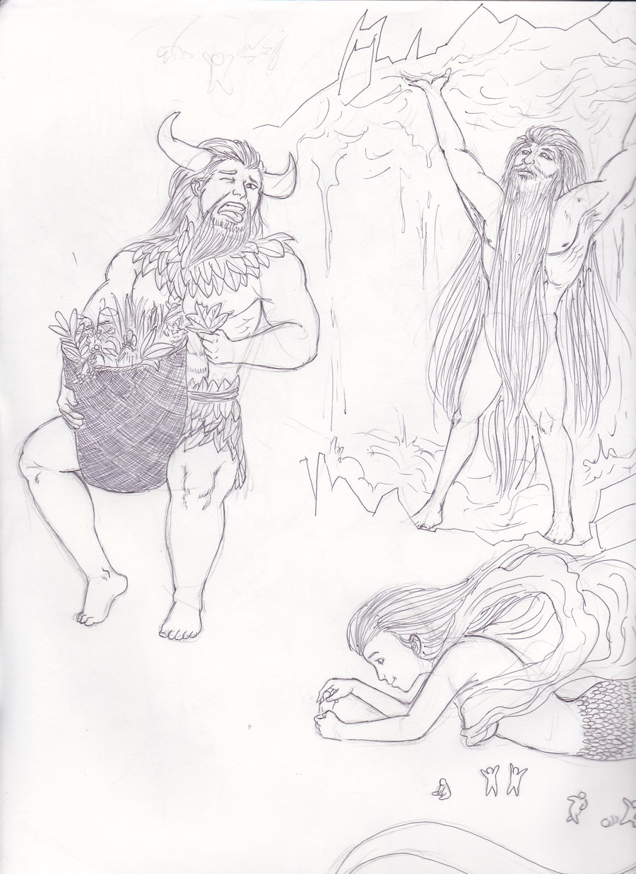 Searching the internet for the next Community Highlight, I came across the below drawing that doodlemancerArt shared on deviantART. According to his description, the image shows sketches of the Chinese mythological figures Pan Gu, Shen Nong and Nu Wa. I love the detail and how each figure shows its special powers.